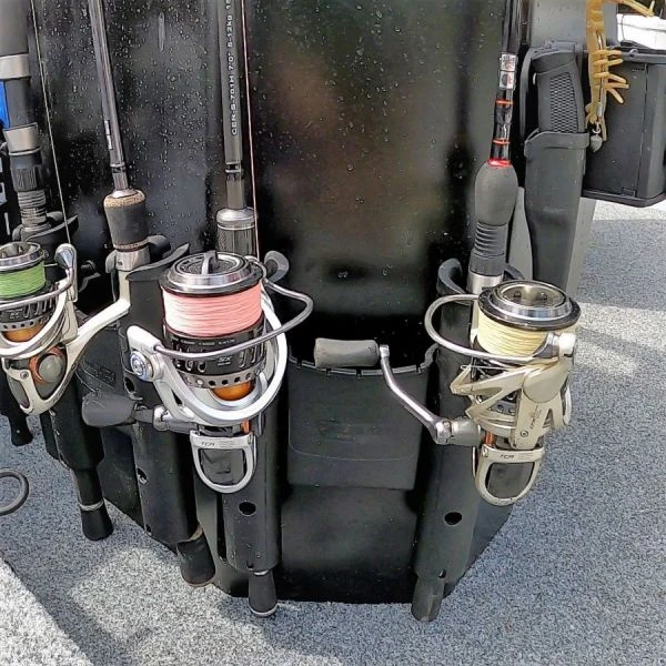The RodStow Double is available in black or white, comes with stainless steel fasteners and can be installed in minutes. It features a storage caddy for lures, traces and other tackle, it’s even big enough to hold a small tackle box. These rod holders have a removable gimbal pin that you can leave in to support the rod and stop rotation, or remove to let the rod pass through.RodStow is a modular system, if you buy more you can add them together to make longer rod racks.Offset mounting is possible, giving you a solution for storing larger reels, without them hitting each other. The vertical RodStow rod rack is suitable for most rods and reels, including spinning, trigger, boat and game reels, and any length of fishing rod.Storage caddy for lures, traces and other tackleTube size 40mm (1.57in) inside diameterCan holds gaffs, boat hooks or netsRemovable gimbal pin to stop rod rotationMade from UV Stabilised, fibreglass reinforced engineering polymersFits all rod lengthsStainless steel screws